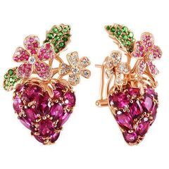 • Серьги из розового золота 585 пробы с родолитами, бриллиантами, сапфирами и цаворитами (ягоды) код. 52283