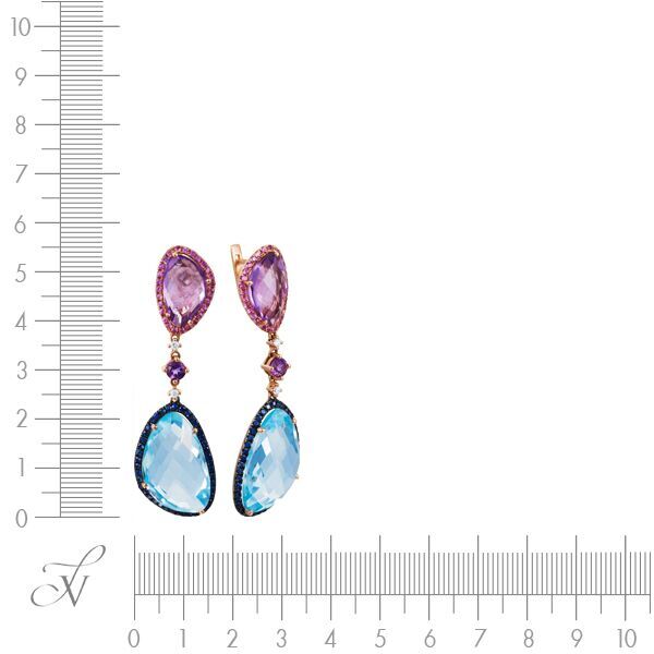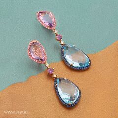 • Серьги из розового золота 585 пробы с цветными полудрагоценными камнями, бриллиантами и сапфирами код. 52490