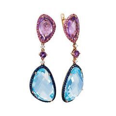 Золотые серьги 585 пробы, камни - бриллиант огранка круглая 57 граней 3/5 - 4шт. вес 0.10 карата, сапфир 3/г3 - 82шт. вес 1.00 карат, сапфир розовый - 56шт. вес 0.70 карата, цветные полудраг камни - 6шт. вес 46.77 карата