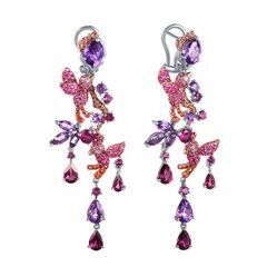 • Серьги из белого золота 585 пробы с аметистами, бриллиантами, сапфирами и родонитами (птицы) код. 52584