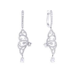 Серьги из белого золота 585 пробы с бриллиантами и сапфирами (бабочки) код. 52614