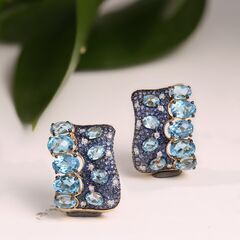 Серьги из золота 585 пробы с бриллиантами, топазами и сапфирами