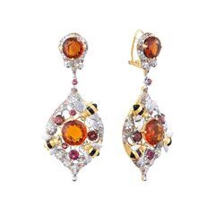 Серьги из золота 750 пробы с бриллиантами, сапфирами, родолитами, цитринами и эмалью