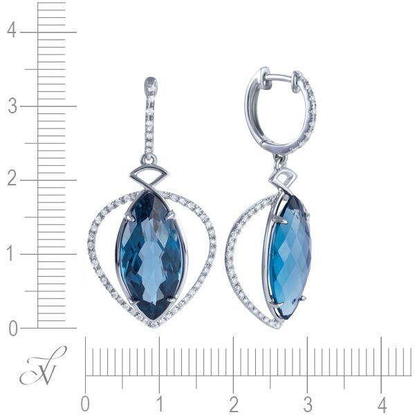 Серьги из белого золота 585 пробы с топазами лондон и бриллиантами код. 57516