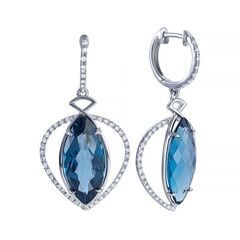 Серьги из белого золота 585 пробы с топазами лондон и бриллиантами