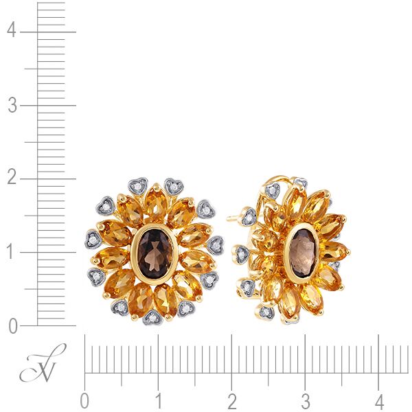 Серьги из золота 585 пробы с бриллиантами, цитринами и раухтопазами
