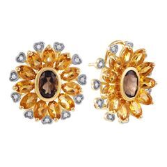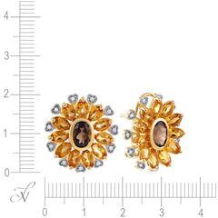 Серьги из золота 585 пробы с бриллиантами, цитринами и раухтопазами (цветы) код. 6040