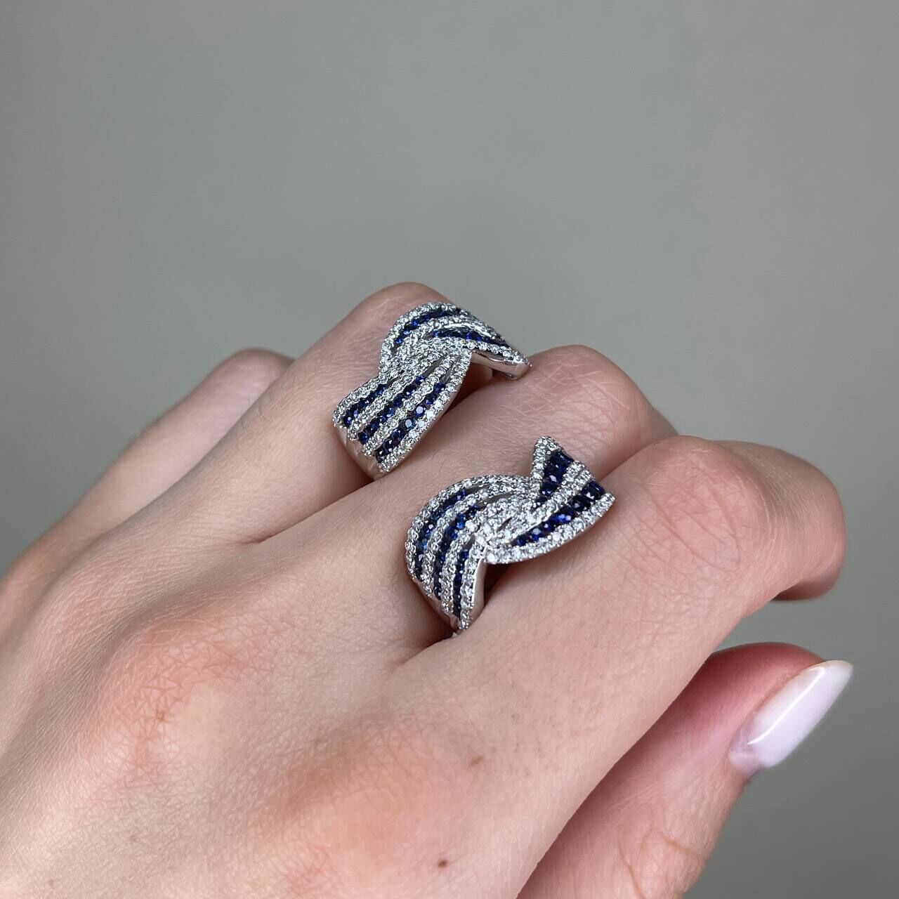 Серьги из белого золота 750 пробы с бриллиантами и сапфирами код. 72847