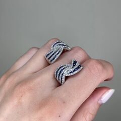 Золотые серьги 750 пробы, камни - бриллиант огранка круглая 57 граней 3/6 - 192шт. вес 0.90 карата, сапфир 3г/2 - 62шт. вес 1.23 карата