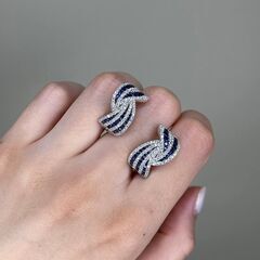 Серьги из белого золота 750 пробы с бриллиантами и сапфирами