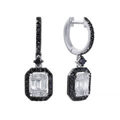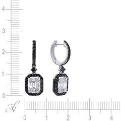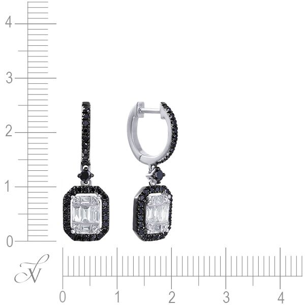 Золотые серьги 585 пробы, камни - бриллиант огранка круглая 57 граней 4/6 - 8шт. вес 0.03 карата, бриллиант облагороженный черный огранка круглая 17 граней 7/6 - 64шт. вес 0.32 карата, бриллиант облагороженный черный огранка круглая 57 граней 7/6 - 2шт. вес 0.04 карата, бриллиант огранка багет 25 граней 4/6 - 10шт. вес 0.30 карата