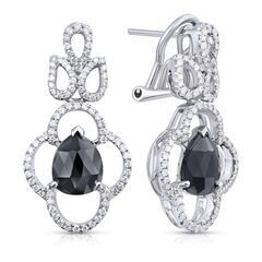 Золотые серьги 750 пробы, камни - бриллиант огранка круглая 57 граней 4/5-6 - 168шт. вес 0.62 карата, бриллиант облагороженный черный овал 7/6 - 2шт. вес 2.33 карата