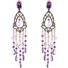 Серьги из серебра 925 пробы с аметистами и фианитами