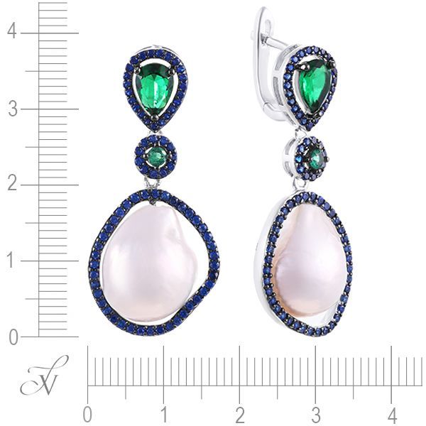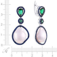 Серьги из серебра 925 пробы с барочным жемчугом и фианитами код. 85577