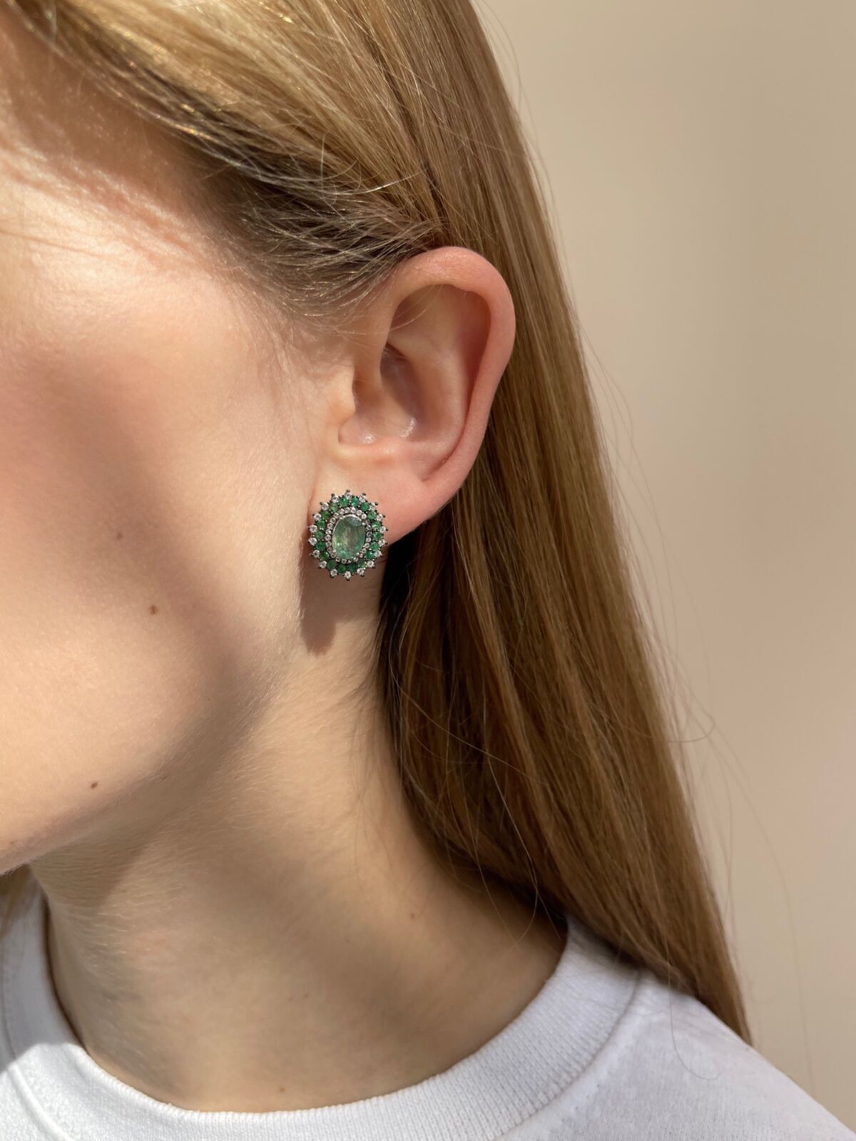 Серебряные серьги 925 пробы, камни - берилл, топаз белый