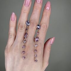Золотые серьги 585 пробы, камни - аметист фиолетовый - 4шт. вес 6.60 карата, аметист фиолетовый - 10шт. вес 4.40 карата