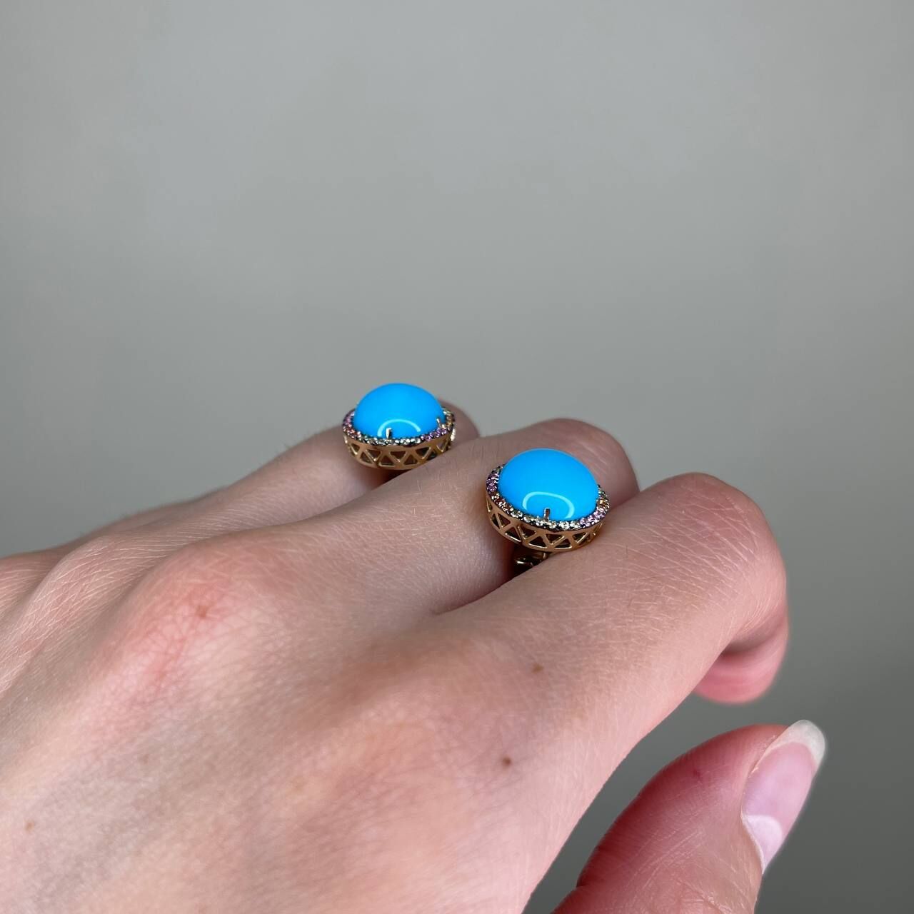 Серьги из золота 585 пробы с сапфирами и бирюзой