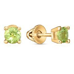 Золотые серьги 585 пробы, камни - перидот зеленый - 2шт. вес 1.05 карата