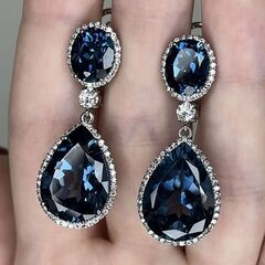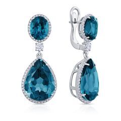 Золотые серьги 585 пробы, камни - бриллиант белый огранка круглая 57 граней 3/6 - 136шт. вес 0.82 карата, бриллиант белый огранка круглая 57 граней 5/5 - 2шт. вес 0.34 карата, топаз лондонский овал - 2шт. вес 6.85 карата, топаз лондонский груша - 2шт. вес 28.26 карата
