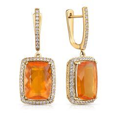 Золотые серьги 585 пробы, камни - бриллиант белый огранка круглая 57 граней 4/5 - 102шт. вес 0.51 карата, опал огненный огненный багет - 2шт. вес 8.48 карата