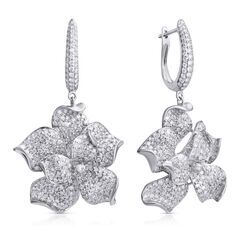 Серьги из белого золота 750 пробы с бриллиантами (цветы) код. 95038