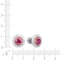 Золотые серьги 585 пробы, камни - бриллиант белый огранка круглая 57 граней 3/5 - 36шт. вес 0.35 карата, сапфир розовый - 22шт. вес 0.28 карата, турмалин розовый - 2шт. вес 0.34 карата