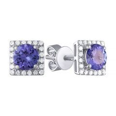 Серьги из белого золота 585 пробы с бриллиантами и танзанитами