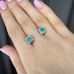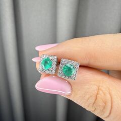 Золотые серьги 585 пробы, камни - бриллиант белый огранка круглая 57 граней 4/5-6 - 40шт. вес 0.28 карата, изумруд зеленый 3/г3 - 2шт. вес 0.78 карата
