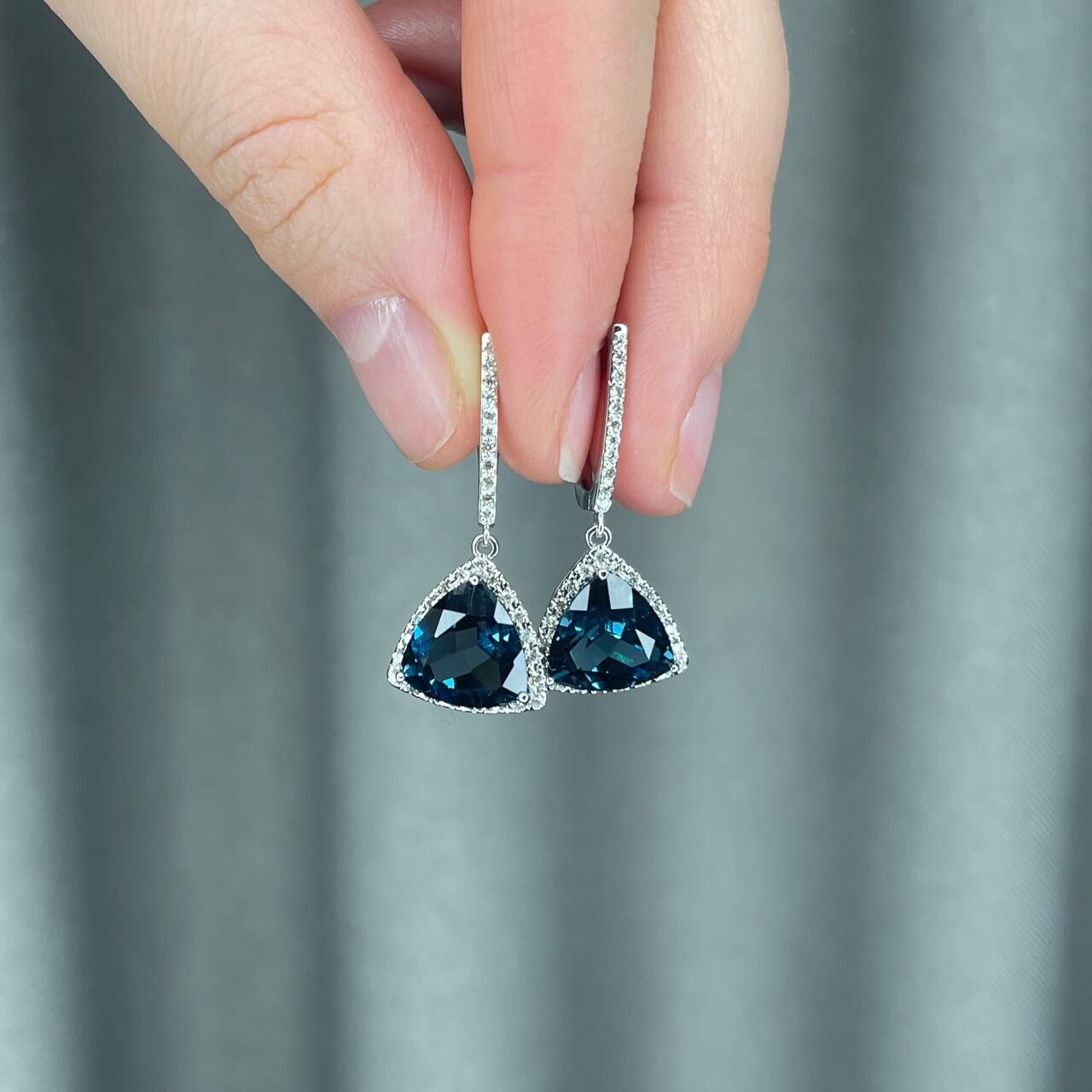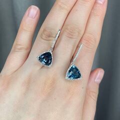 Золотые серьги 585 пробы, камни - бриллиант белый огранка круглая 57 граней 4/5-6 - 64шт. вес 0.42 карата, топаз лондонский триллиант - 2шт. вес 8.40 карата