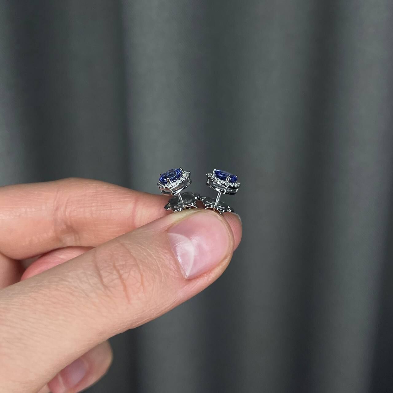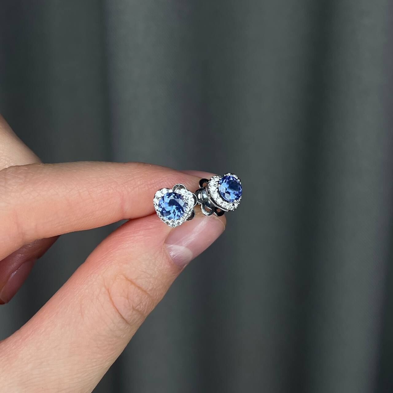 Серьги из белого золота 585 пробы с танзанитами и бриллиантами