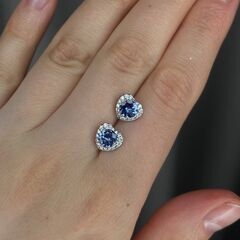 Серьги из белого золота 585 пробы с танзанитами и бриллиантами (сердце) код. 95754