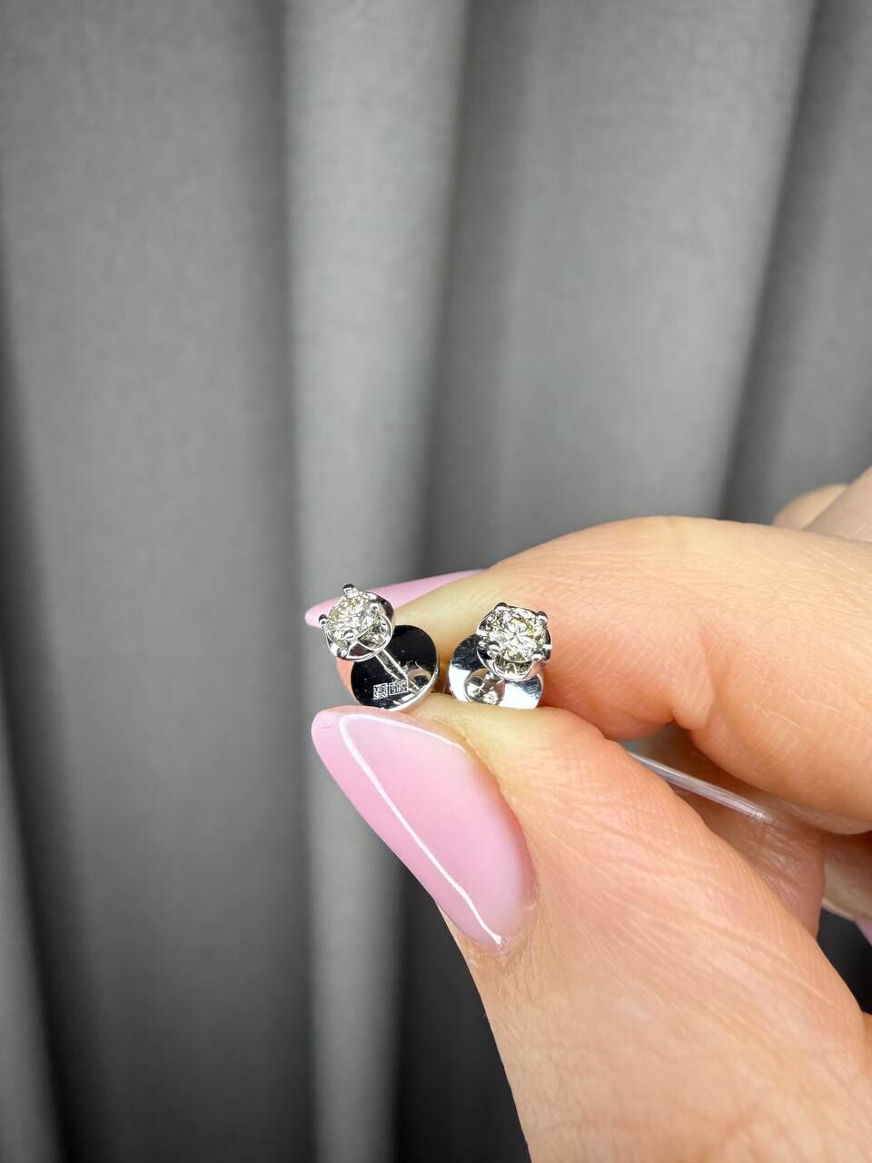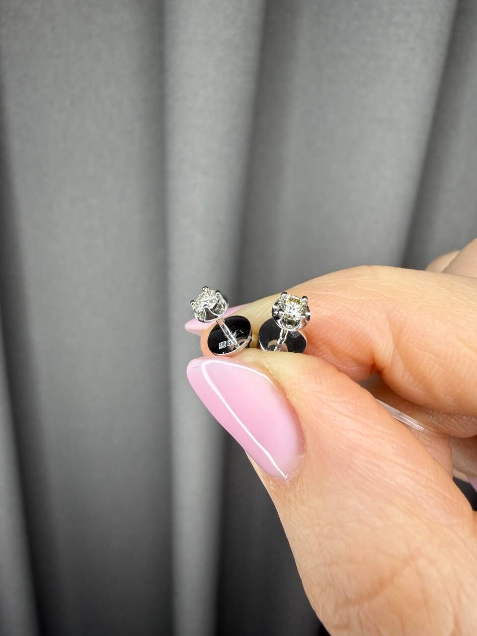 Золотые серьги 585 пробы, камни - бриллиант белый огранка круглая 57 граней 6/5 - 2шт. вес 0.22 карата