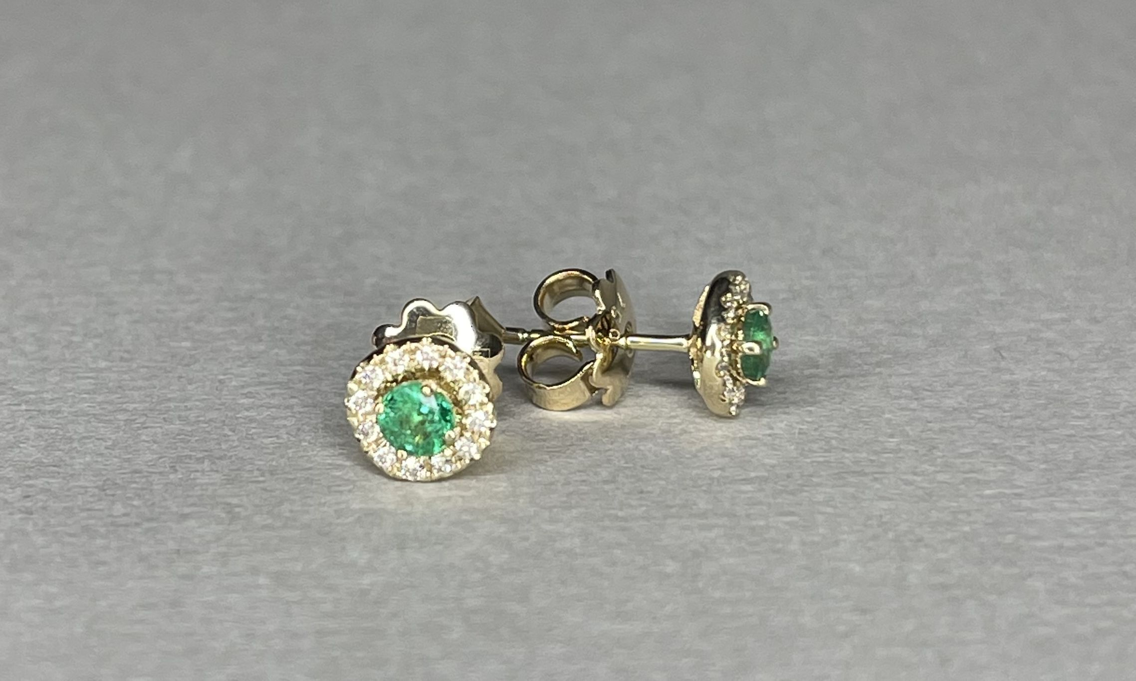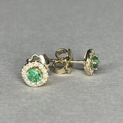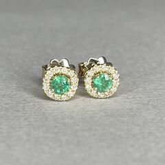 Золотые серьги 585 пробы, камни - бриллиант белый огранка круглая 57 граней 4/5 - 24шт. вес 0.20 карата, изумруд зеленый 3/г3 - 2шт. вес 0.82 карата