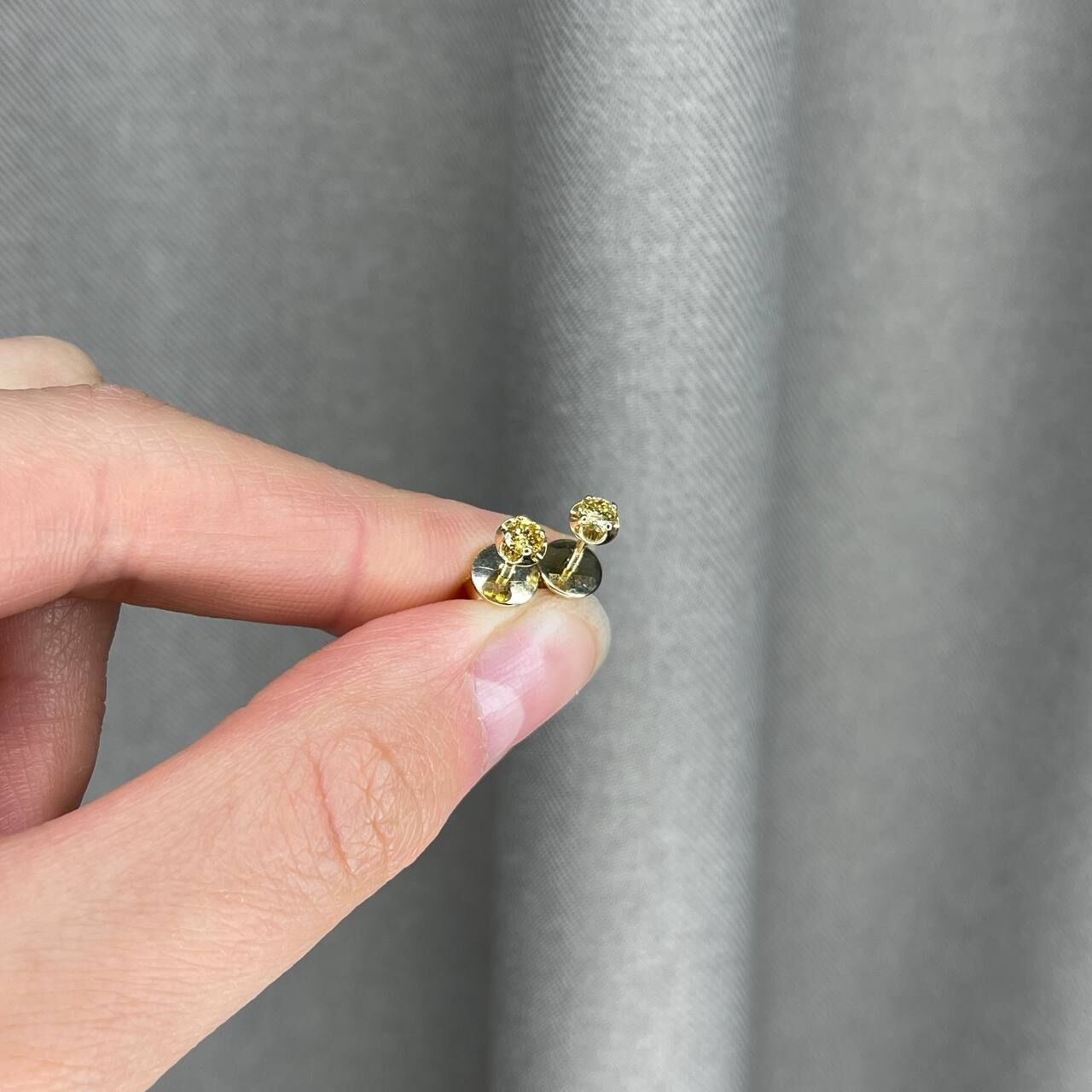 Золотые серьги 585 пробы, камни - бриллиант желтый огранка круглая 57 граней 6/5 - 2шт. вес 0.26 карата